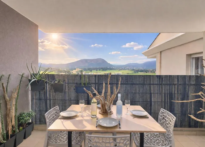 El Apartamento Tropical Escape - Terrace&mountain view Ajaccio, situado a 17 minutos a pie de los Picos de los Sueños, ofrece Wi-Fi tanto para estancias de negocios como de ocio. El Naporama está a 6 km del apartamento, mientras que la estación de autobuses Pont de la Confina está muy cerca de la propiedad.